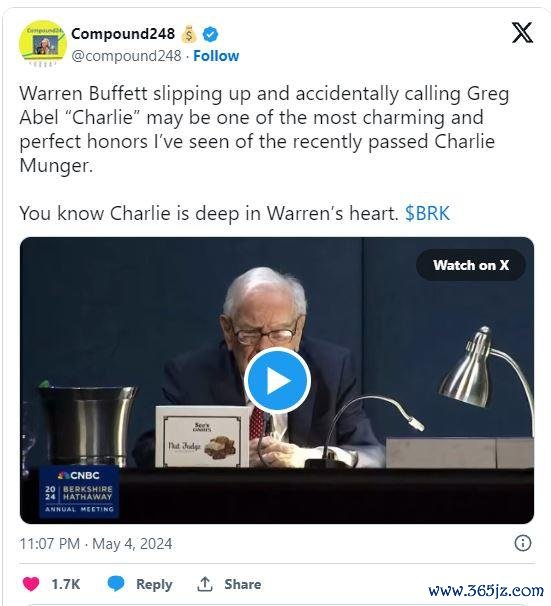 泪目一刻:巴菲特不小心脱口而出“查理,该你回答了”